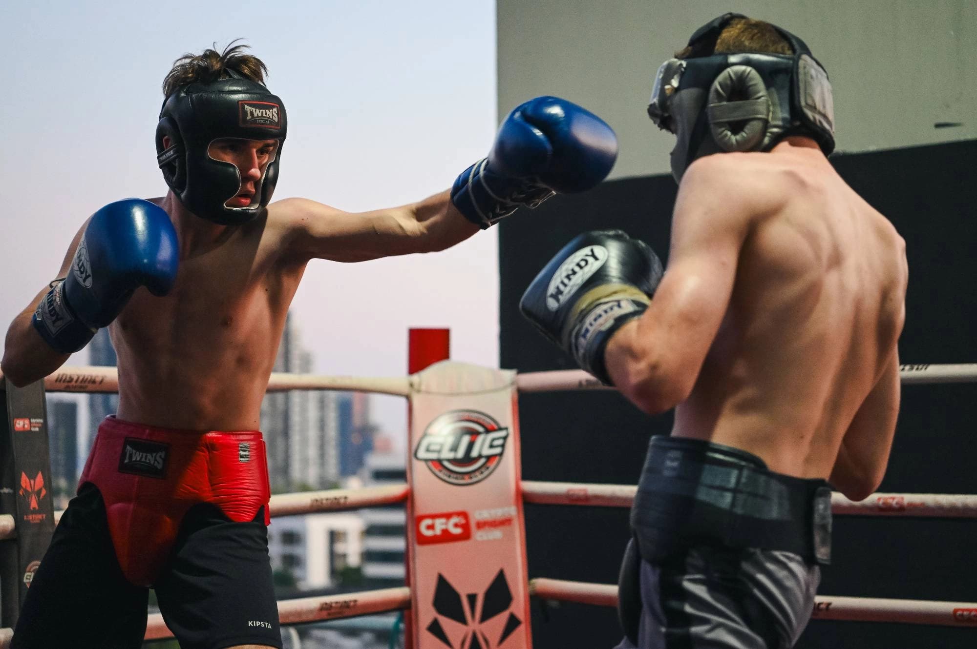 Travail technique, sparring et condition physique dans un gym moderne au centre de la capitale thaïlandaise